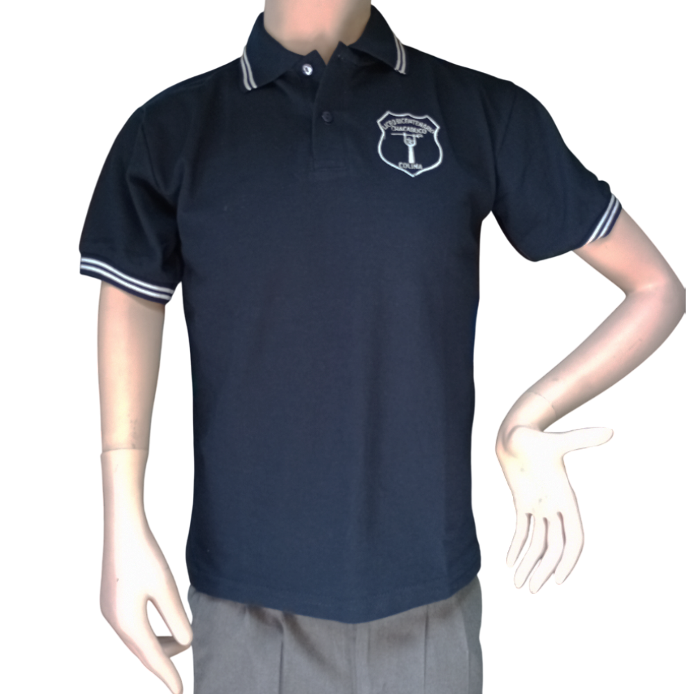 POLERA UNIFORME MANGA CORTA UNISEX, TELA PIQUE, COMPOSICIÓN 50% ALGODÓN -50% POLIESTER, BORDADO INSTITUCIONAL, CUELLO TEJIDO